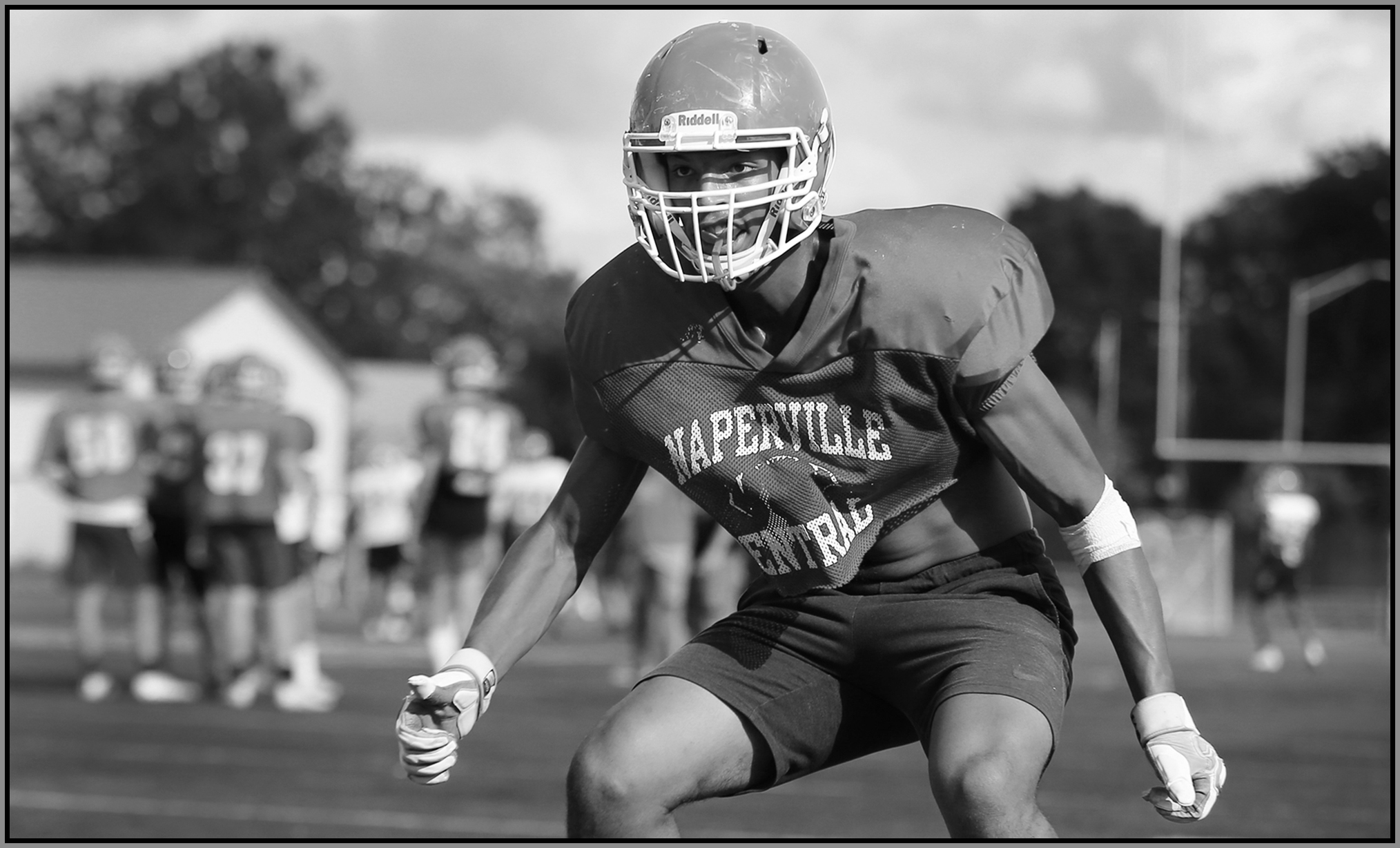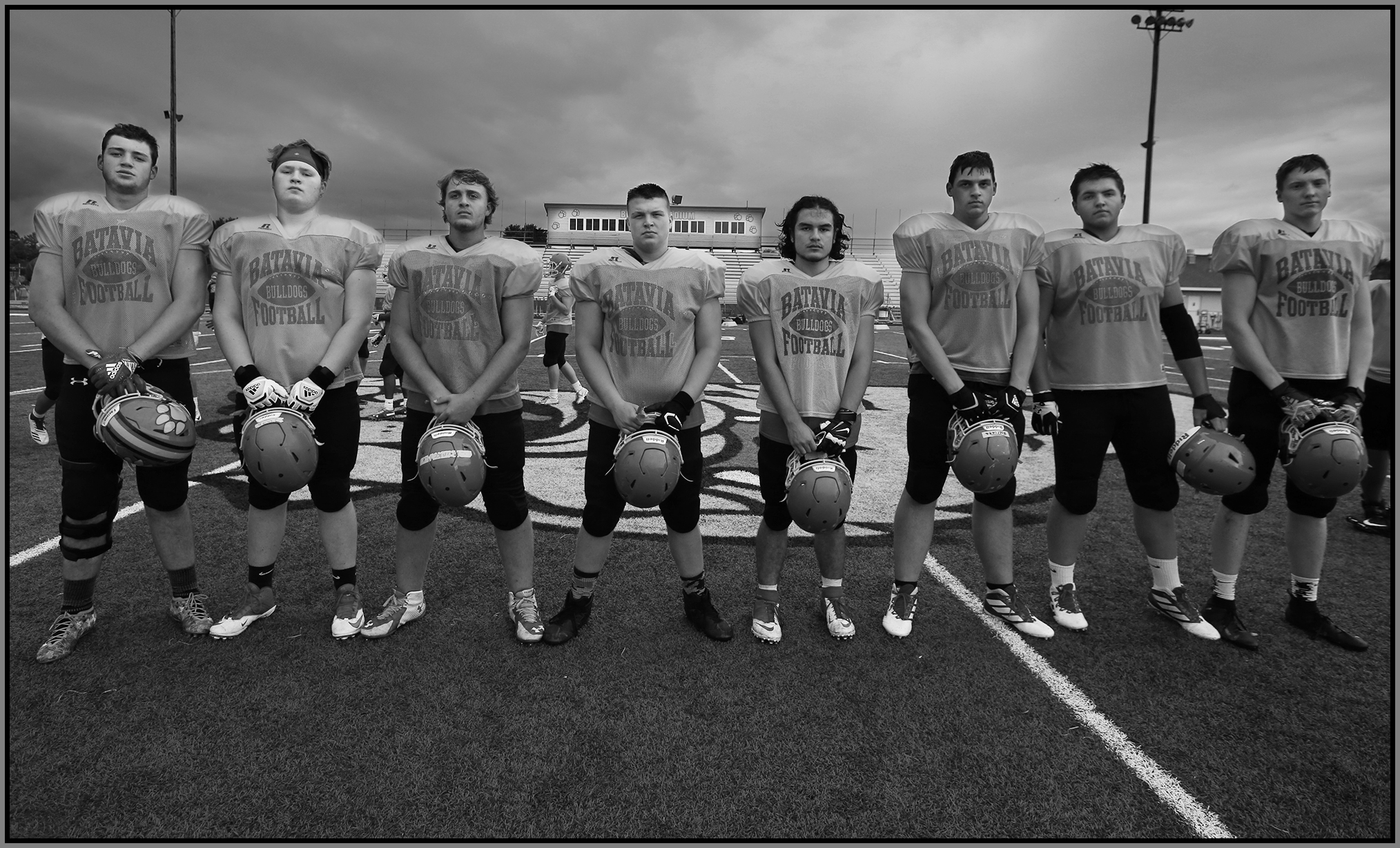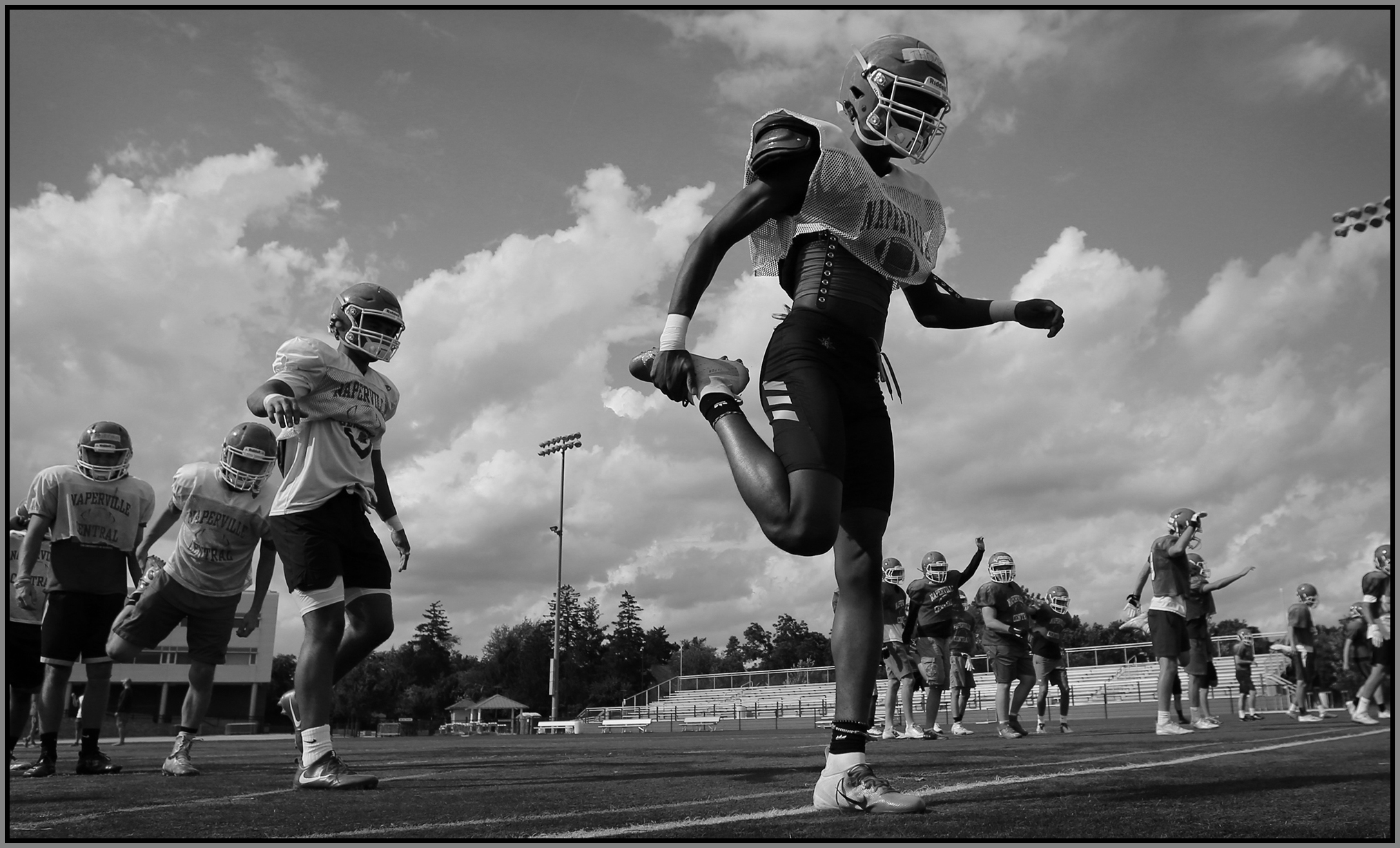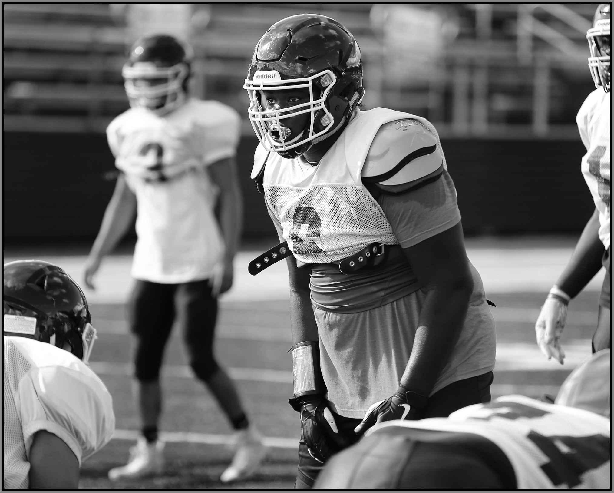Under the lights of Friday night, my task is to show how plays and players decide the outcome of the contest. On a practice field under a withering sun on an unremarkable Wednesday afternoon, my challenge is to make photographs that introduce new players or reveal more of a returning player’s personality. Hopefully I have met my preseason challenge and the images that appear here increase football fans’ excitement for the upcoming games.