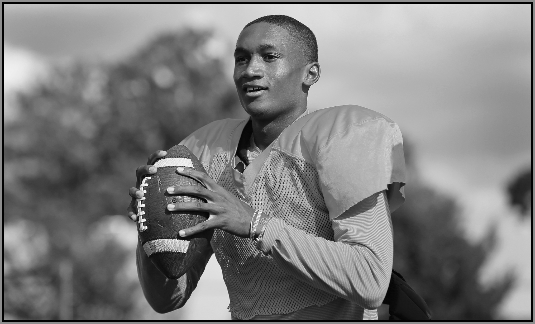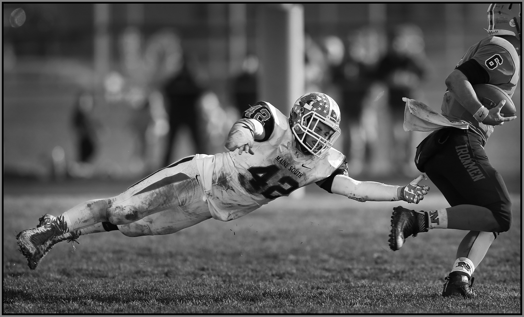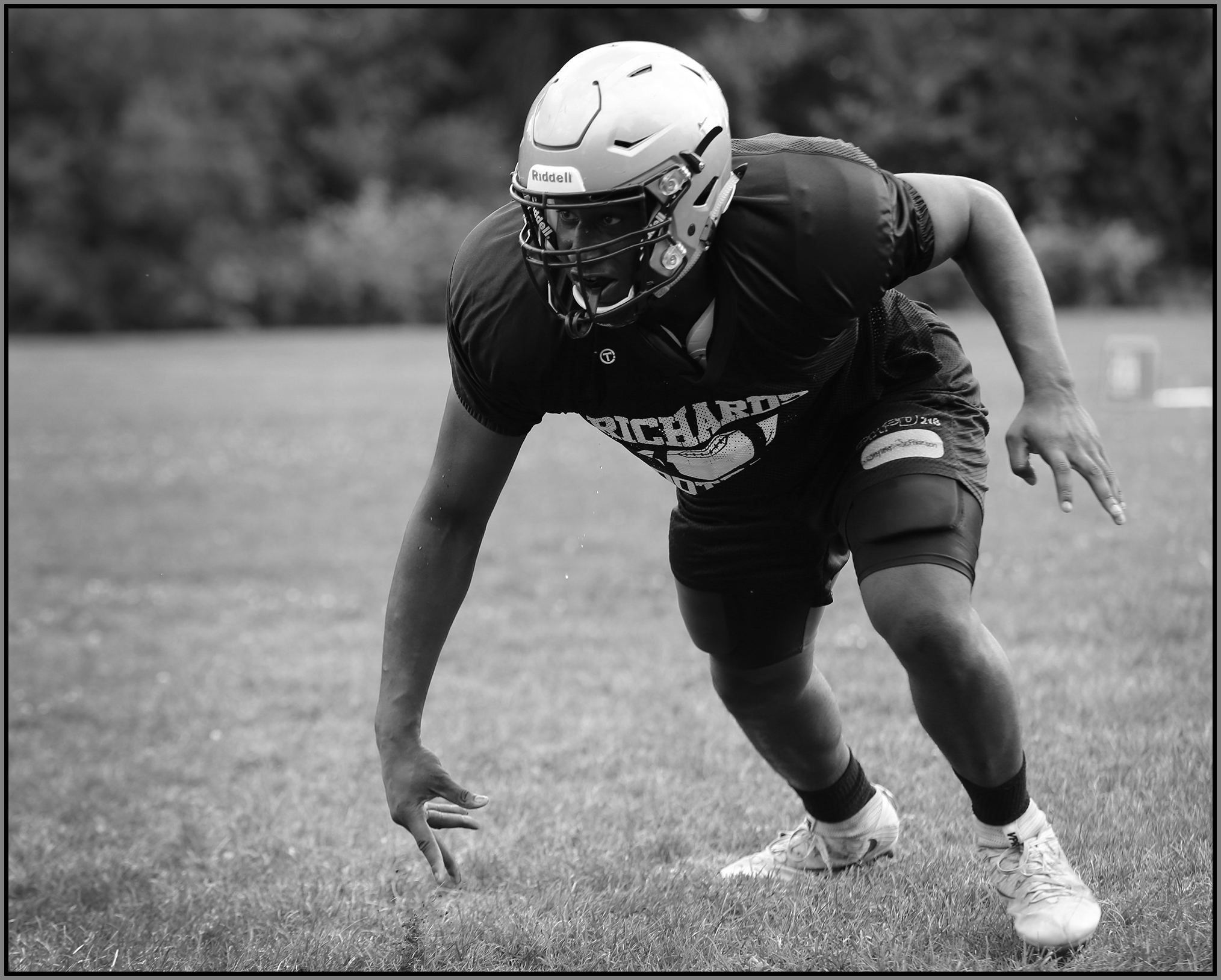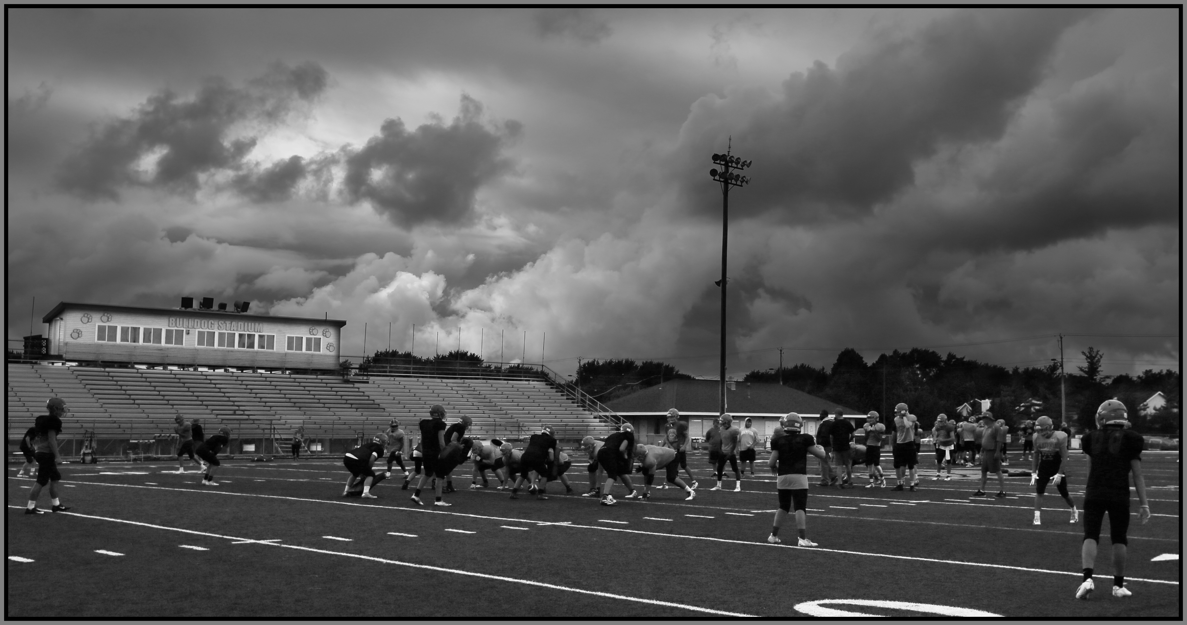 Under the lights of Friday night, my task is to show how plays and players decide the outcome of the contest. On a practice field under a withering sun on an unremarkable Wednesday afternoon, my challenge is to make photographs that introduce new players or reveal more of a returning player’s personality. Hopefully I have met my preseason challenge and the images that appear here increase football fans’ excitement for the upcoming games.