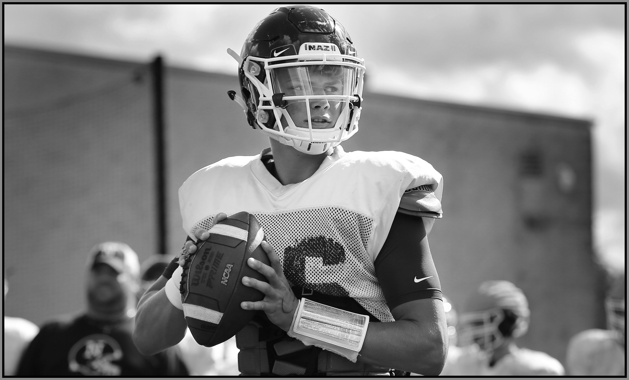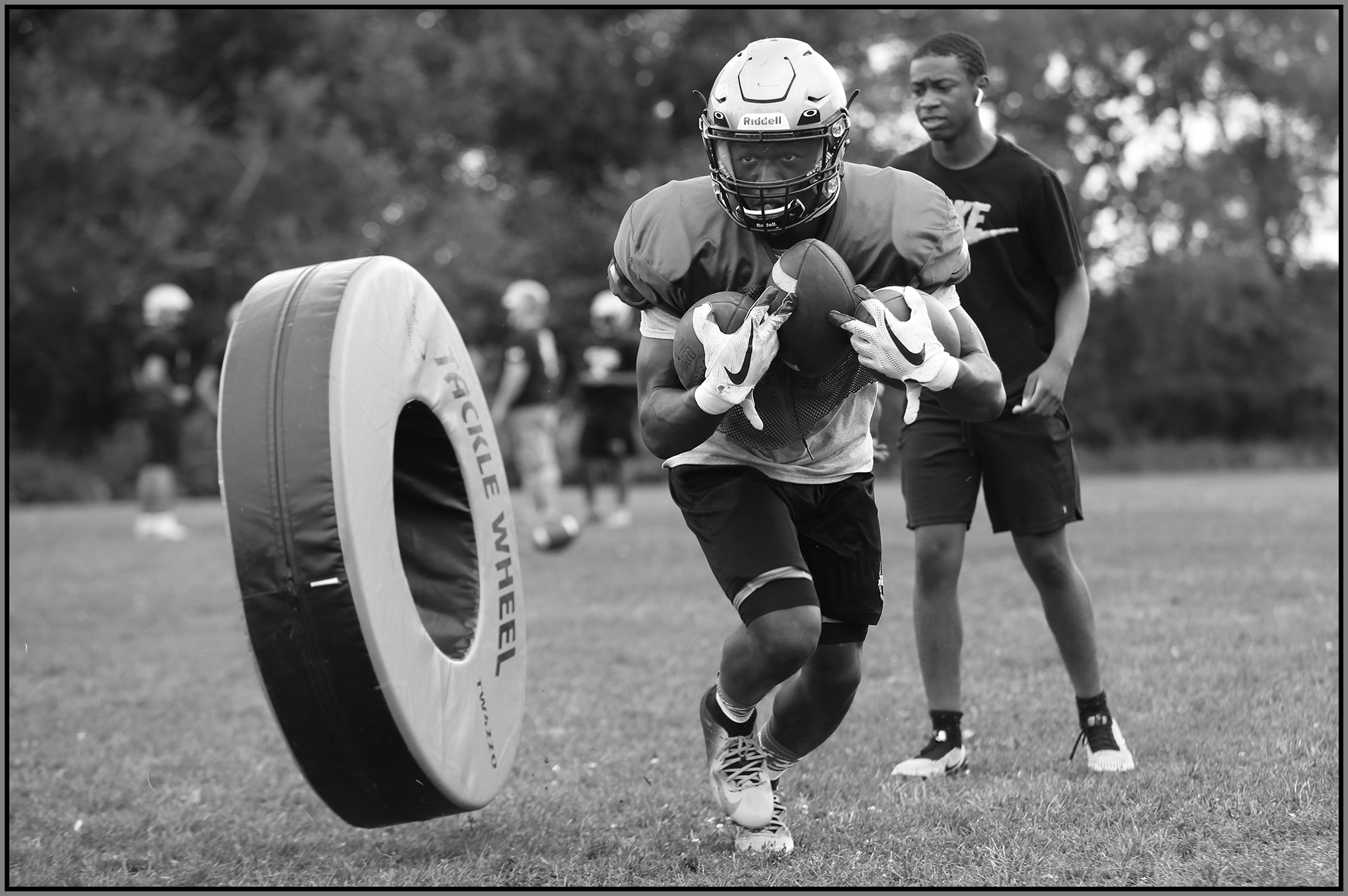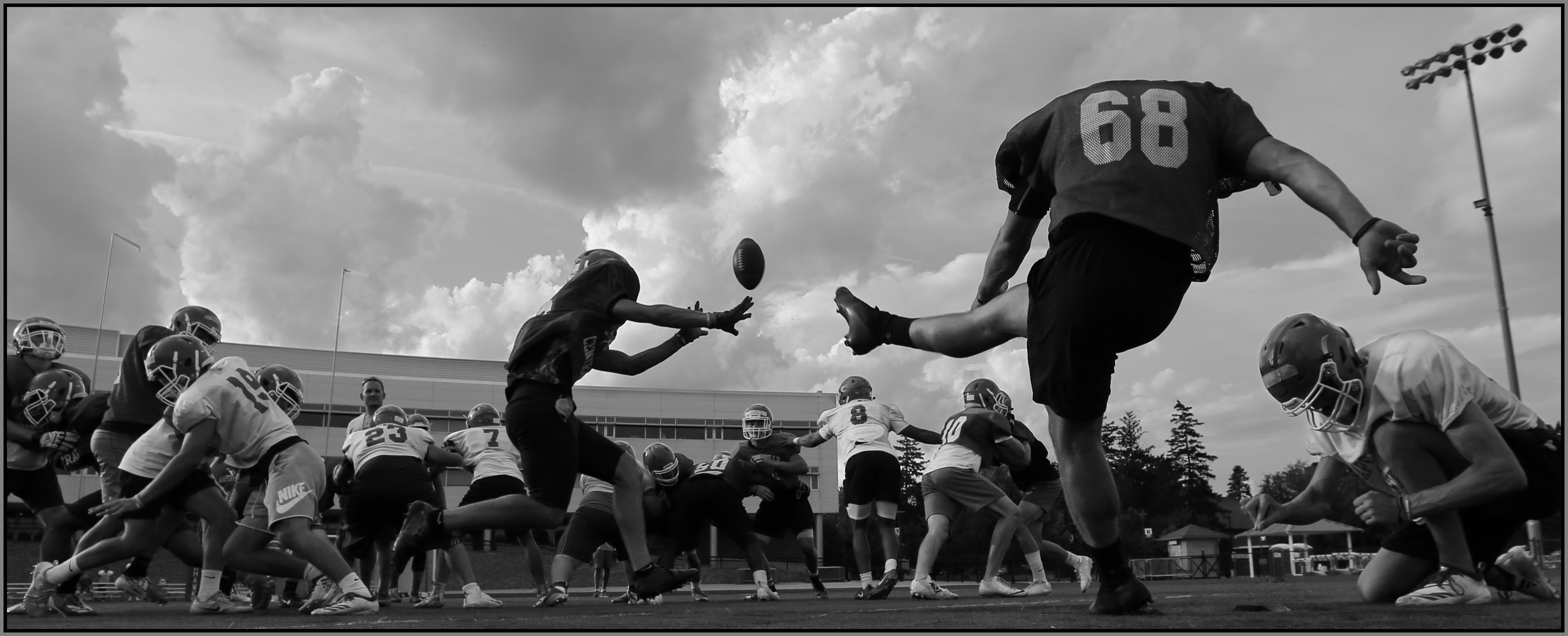 Photographing preseason practice is an awesome opportunity. Football coaches are notoriously suspicious of anyone who isn’t part of their program, and I respect that, but truly great coaches find a comfortable balance between protecting and promoting their team. These veteran coaches can’t help but share their understanding and love of the game, and that enables fans to get more enjoyment out of watching, and it also helps a photographer make better photographs on game day.