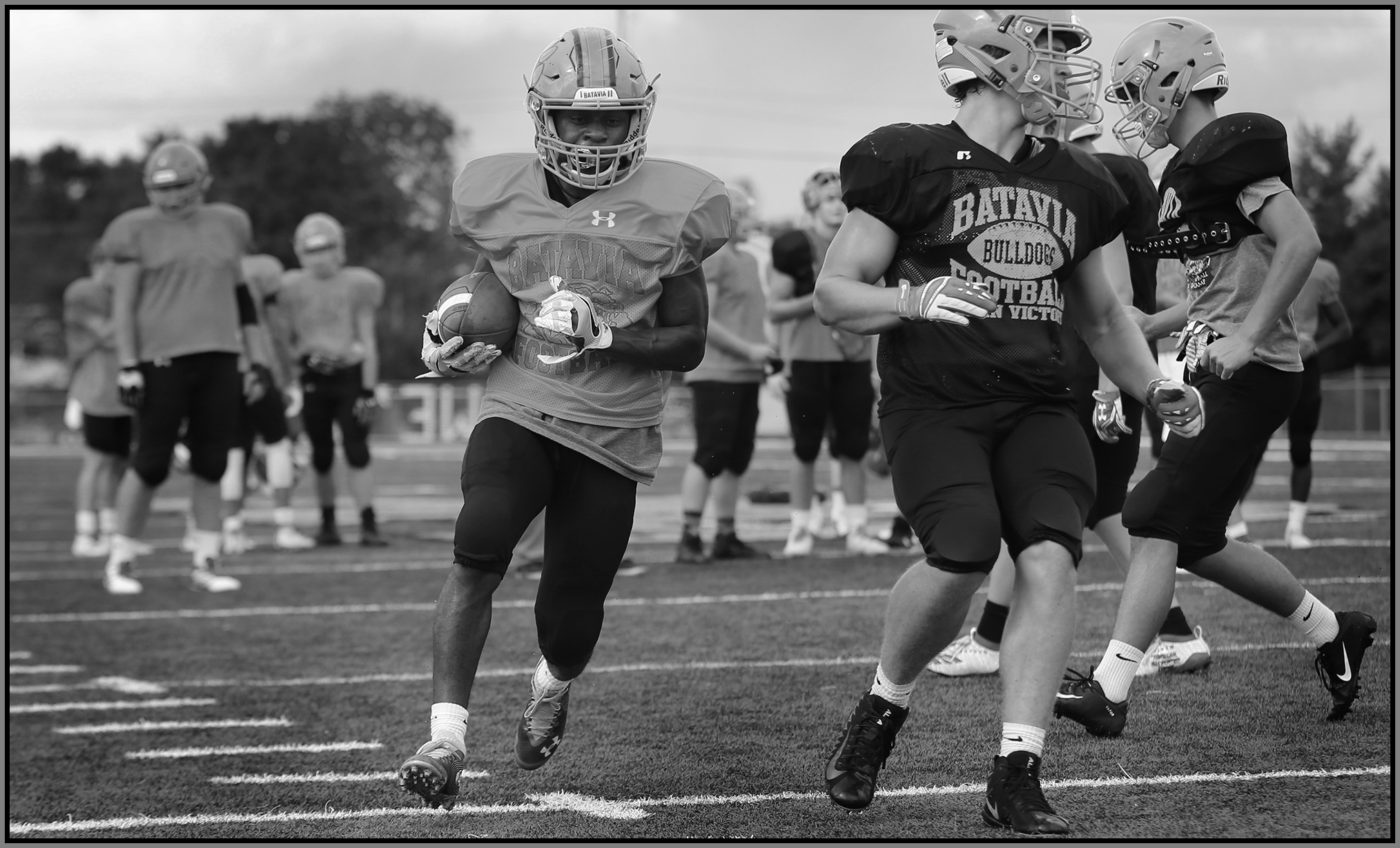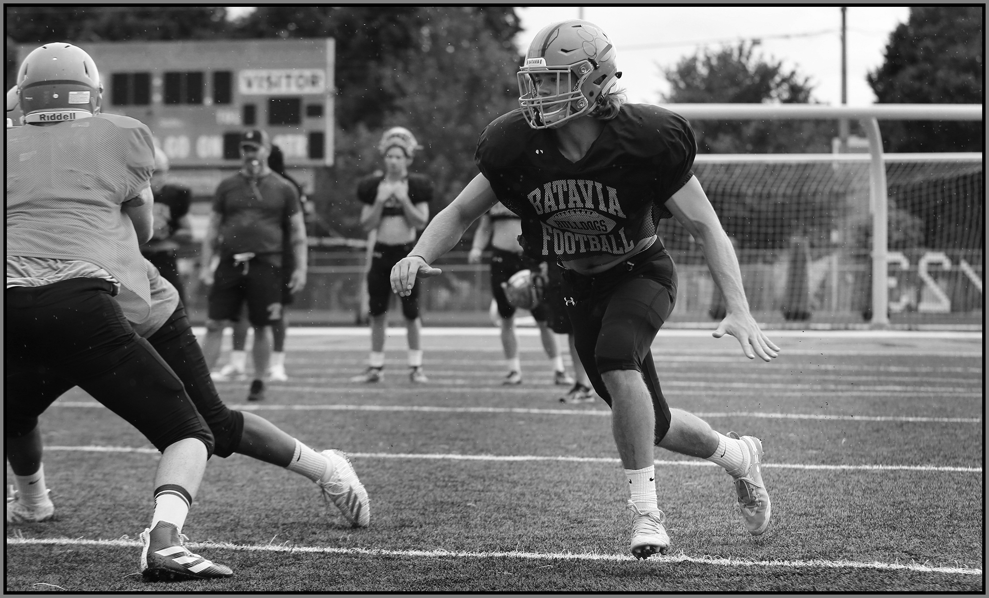 My visit to Batavia was a great afternoon, even if it did rain. This is Quinn Urwiler’s fourth, and final year, of making opposing coach’s game plans look silly. I’m sure Geneva and other neighboring teams can’t wait to see him go. If you haven’t already seen him, don’t miss a chance to see this two-way player amaze you. On offense the Bulldogs have a BIG line to create space for Urwiler and Art Taylor. On defense, along with Urwiler and Jackson Williams, the Bulldogs have the well-named ‘Mojo’. A linebacker who keeps quarterbacks asking, “Does anybody wanna block that guy tonight?”